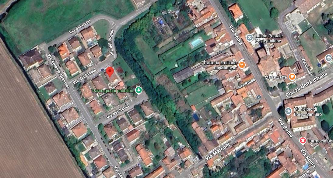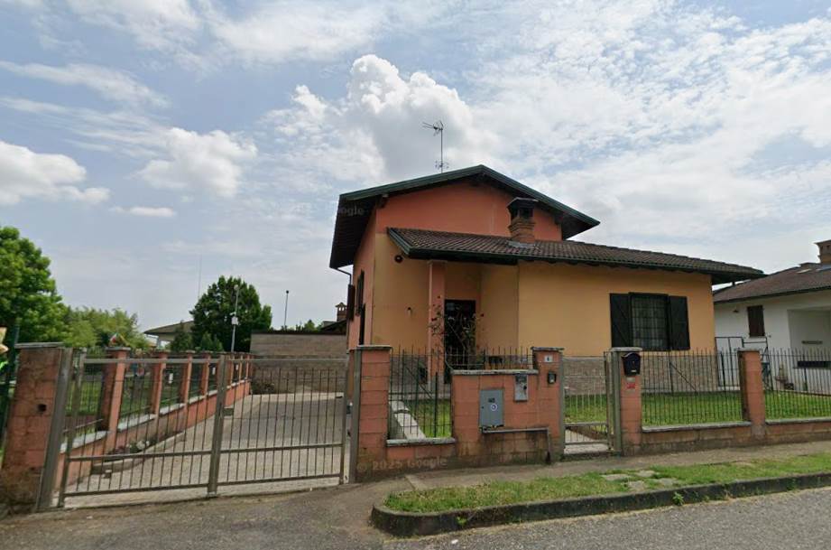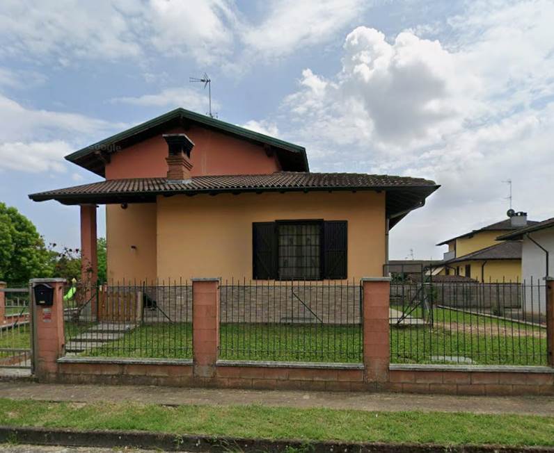 Villa indipendente con giardino ed autorimessa pertinenziali all'asta a Borgo San Siro (PV), sita in Via dei Pioppi n. 6, all'interno di un quartiere residenziale di recente edificazione.