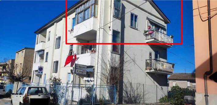 L'abitazione si trova al terzo ed ultimo piano di una palazzina e al suo interno è così distribuito: ingresso, cucina, soggiorno, retrocucina (veranda), disimpegno zona notte, due camere da letto, un bagno.