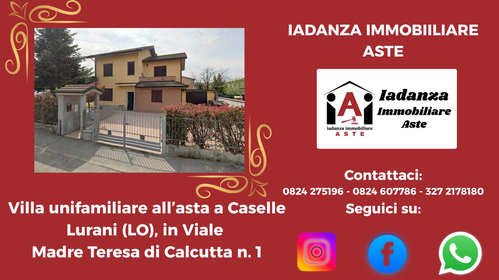 Villa unifamiliare con corte esterna esclusiva all'asta a Caselle Lurani (LO), sita in Viale Madre Teresa di Calcutta n. 1.