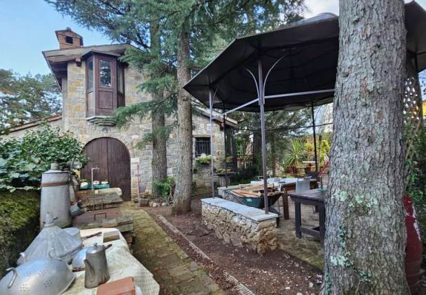 A completamento della proprietà vi è poi un'ampia area esterna di pertinenza esclusiva interamente recintata, in parte pavimentata ed in parte adibita a giardino con alberi di varia natura.