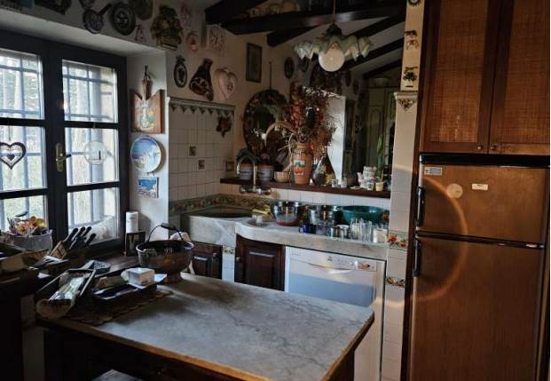 -ingresso su soggiorno a doppia altezza, tavernetta con camino, guardaroba, disimpegno cha da accesso ad un bagno e ad un vano lavanderia, cucina abitabile, secondo soggiorno sempre con camino, camera da letto ed ulteriore servizio igienico.