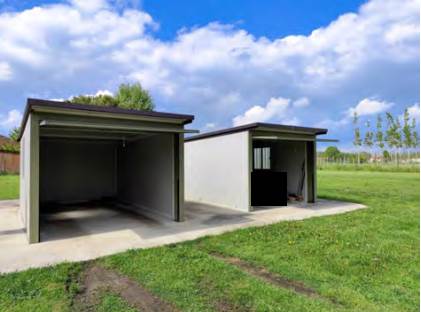 L'abitazione è circondata da un'ampia area esterna di pertinenza esclusiva adibita a giardino, all'interno della quale sono stati posizionati due garage prefabbricati.