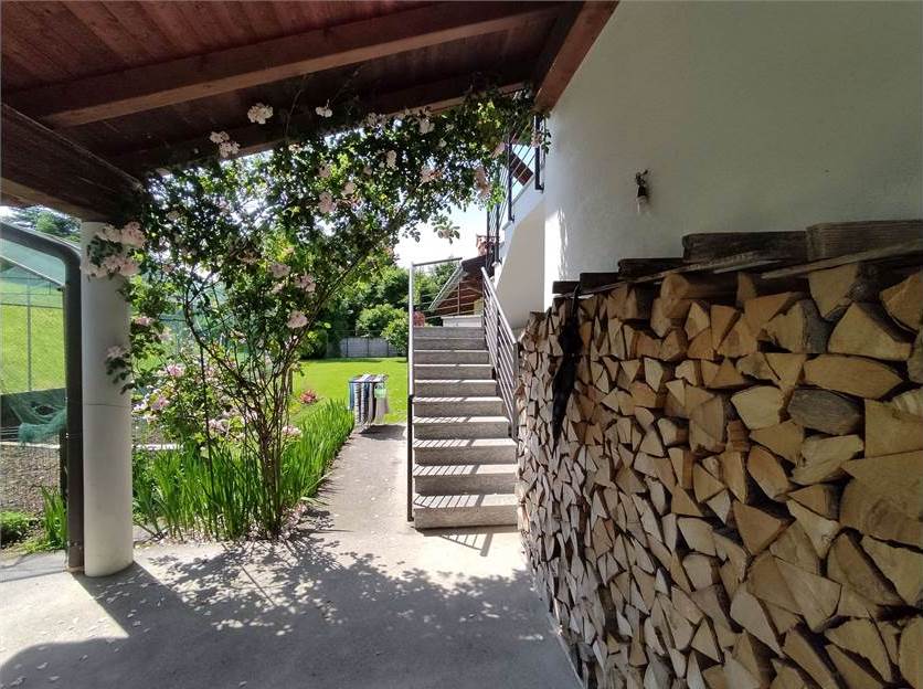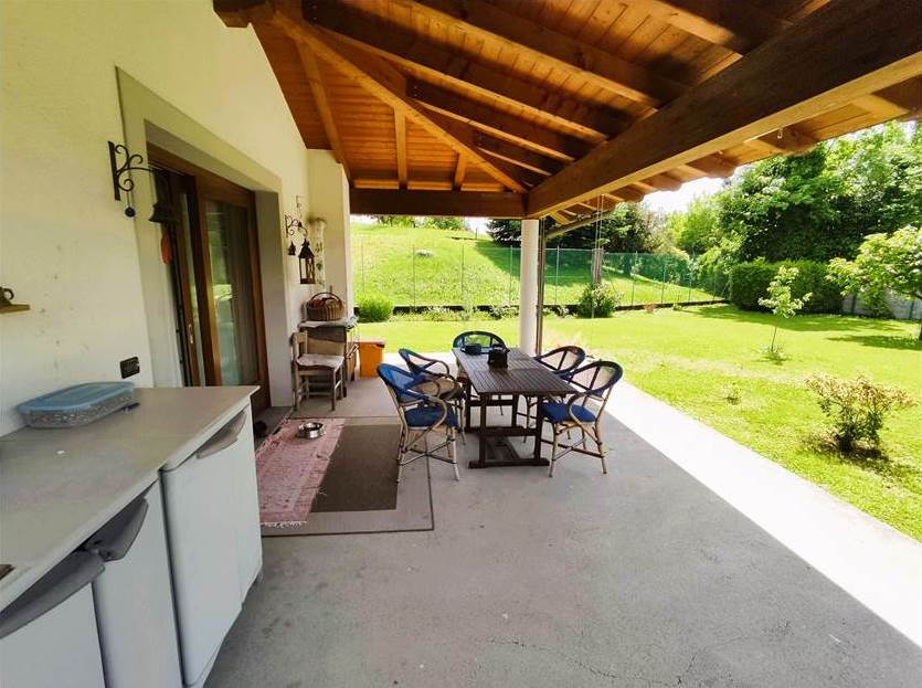 A completamento della proprietà vi è, infine, un'ampia area esterna di pertinenza esclusiva, in parte adibita a giardino ed in parte adibita a portico e spazio di sosta per i veicoli.