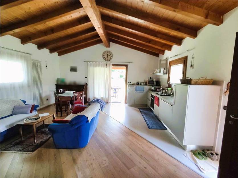 -piano terra composto da ingresso su ampio soggiorno, cucina con tetto in legno a vista, lavanderia, wc, studio, bagno, due camere, ripostiglio e disimpegno;