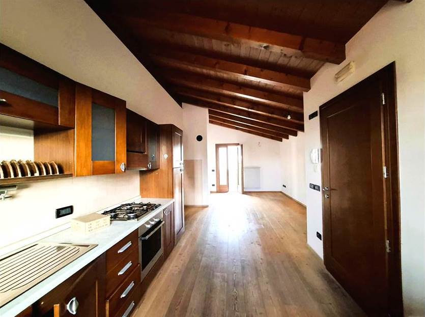 -primo piano, interamente mansardato, composto da cucina-soggiorno, due camere da letto, bagno ed un balcone.