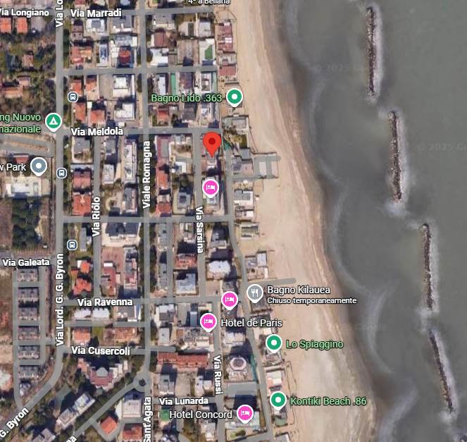 La posizione dell’immobile fronte-mare offre un collegamento diretto con gli stabilimenti balneari, raggiungibili attraverso il portone posizionato sul lato est del condominio.