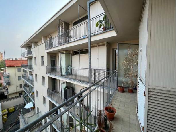 -ingresso su ampio soggiorno, cucina abitabile, disimpegno, due bagni, due camere da letto e due balconi.