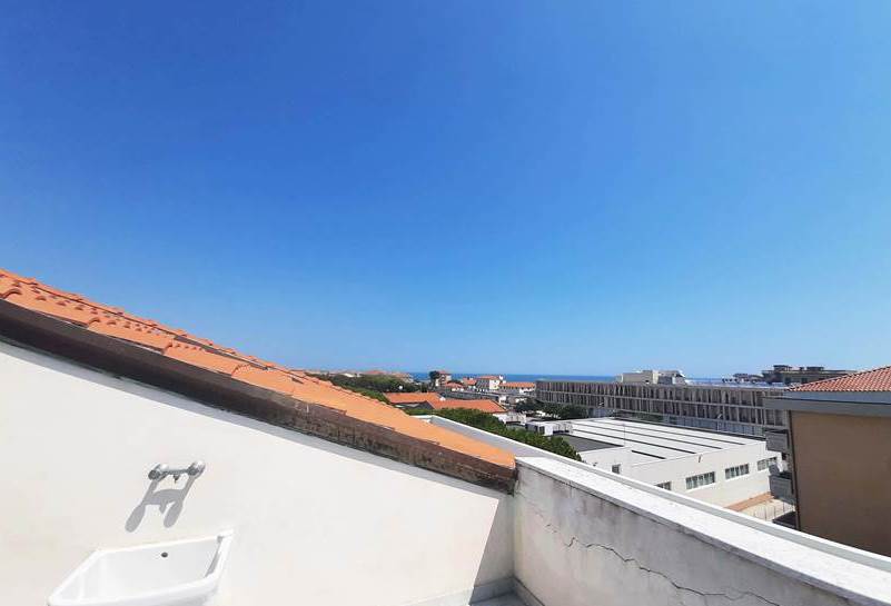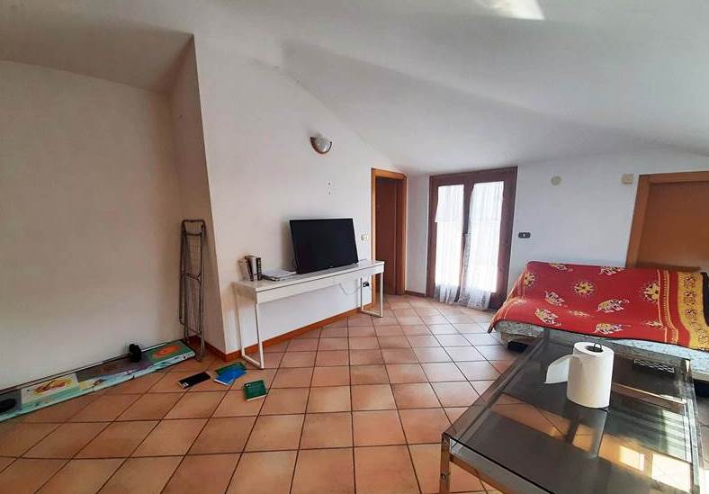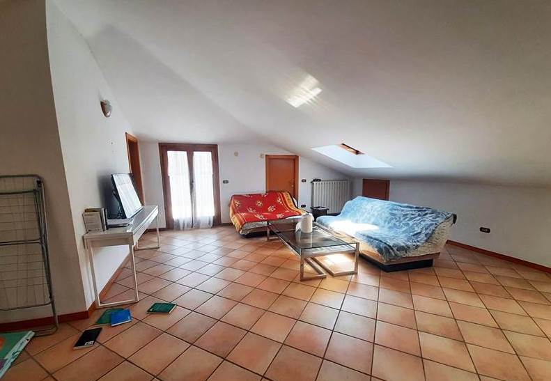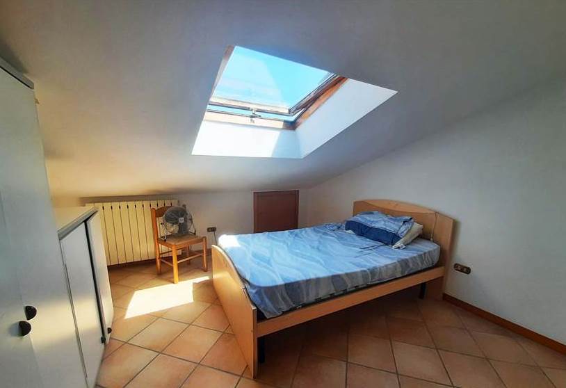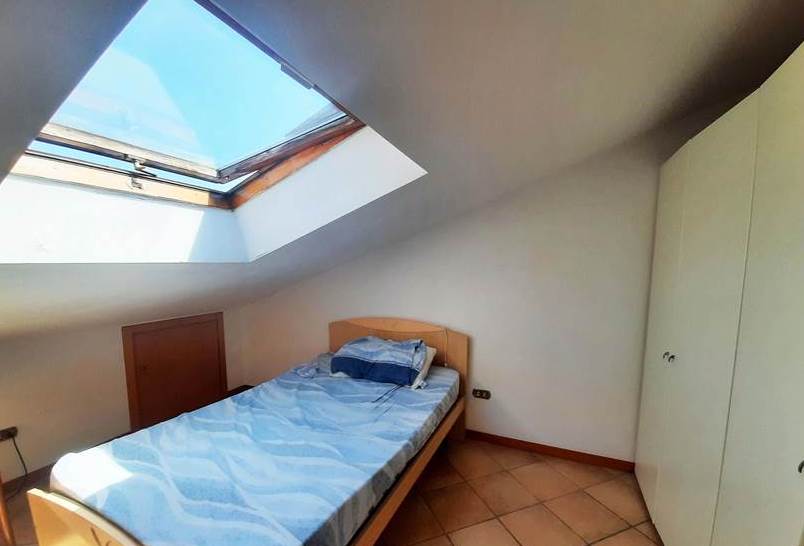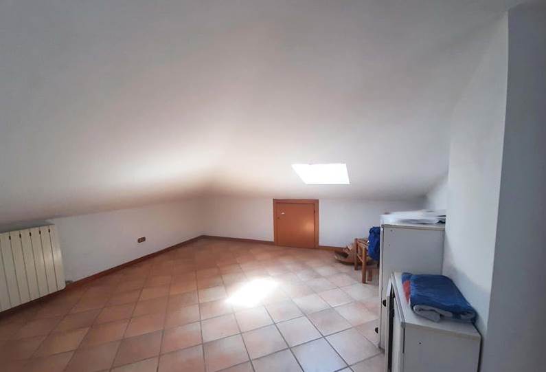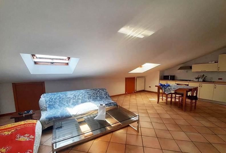 L'appartamento mansardato è posto al quarto e ultimo piano di una palazzina e al suo interno è così composto: ingresso, due camere, un bagno, una cucina, cinque ripostigli sottotetto e un terrazzo.